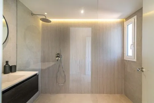 The welcoming front entrance of the home features ample space for socialising, giving way to a living room, a kitchen that is fully furnished with items from the exclusive brand Porcelanosa, a bedroom and a bathroom.